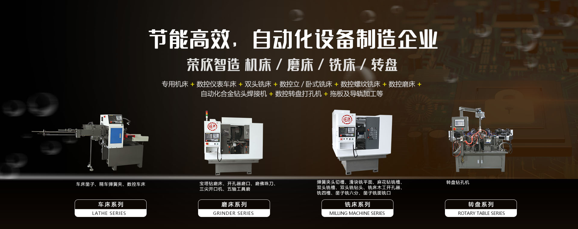 浙江榮欣機械有限公司坐落于國家首批5A級風景名勝區溫州市雁蕩山麓,是一家集科研開發、生產、銷售于一體的自動化設備制造企業。公司擁有多項發明專利,并已取得ISO9001質量管理體系認證。       在多年的業務拓展中,已與眾多企業建立了長期愉快的合作關系,足跡遍布全國各地,憑借多年的生產經驗和技術,自主開發了一系列的全自動及半自動機床,現有主導機床產品有:專用機床、數控儀表車床、雙頭銑床、數控立/臥式銑床、數控螺紋銑床、數控磨床、自動化合金鉆頭焊接機、數控自動轉盤打…